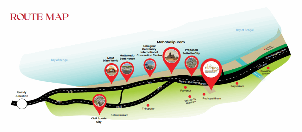 Lé Sterling Bay invites you to a life in rhythm with nature, nestled along the scenic East Coast Road at Mahabalipuram. With DTCP, RERAapproved plots, thoughtfully crafted amenities, and holiday-inspireda living, this is your chance to own a weekend retreat that brings peace and prosperity. Just like the sandpiper finds harmony at the meeting point of land and sea, you too can find balance at Lé Sterling Bay. Located on ECR’s prime coastal belt, this project invites you to blend lifestyle with leisure.